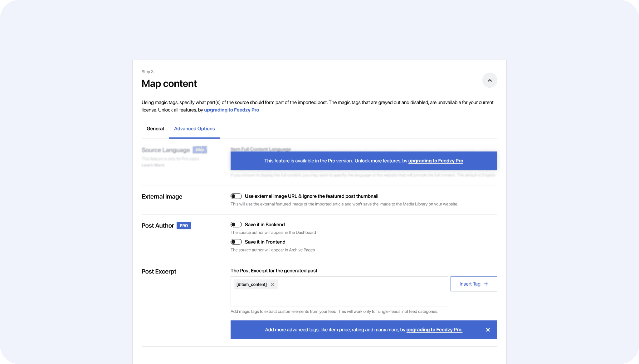 After brainstorming potential solutions, we agreed it would be best to show all the features in the Free version (with Pro upsells), making all the plugin's capabilities visible to the users. Before this, users had to search or ask the support team if Feedzy had a specific feature.