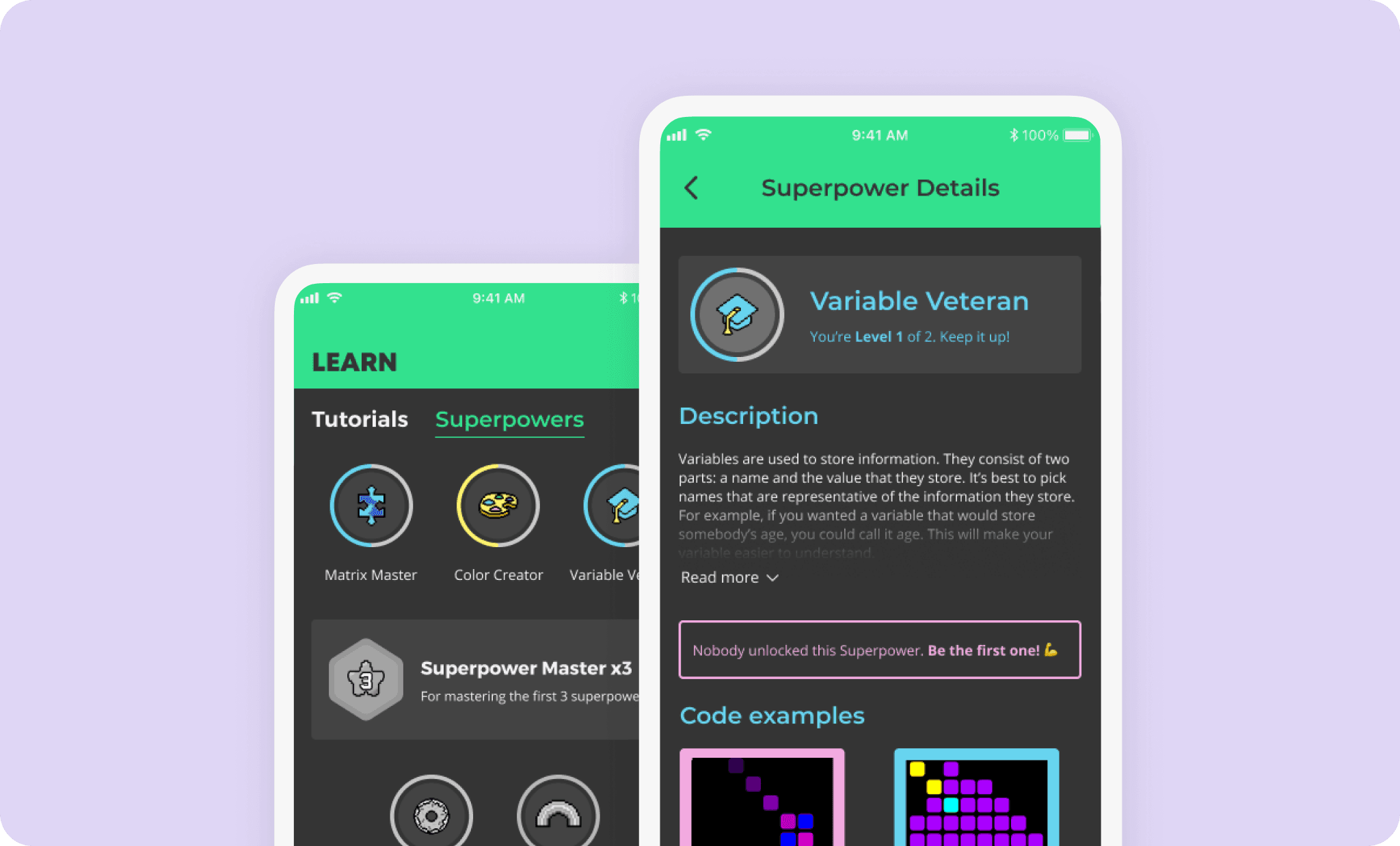 I've contributed to adding a space where users can track their progress in learning Python & programming concepts. Additionally, they can view code examples related to programming concepts. Under the Description section, the call to action incentivizes users to complete a Superpower.