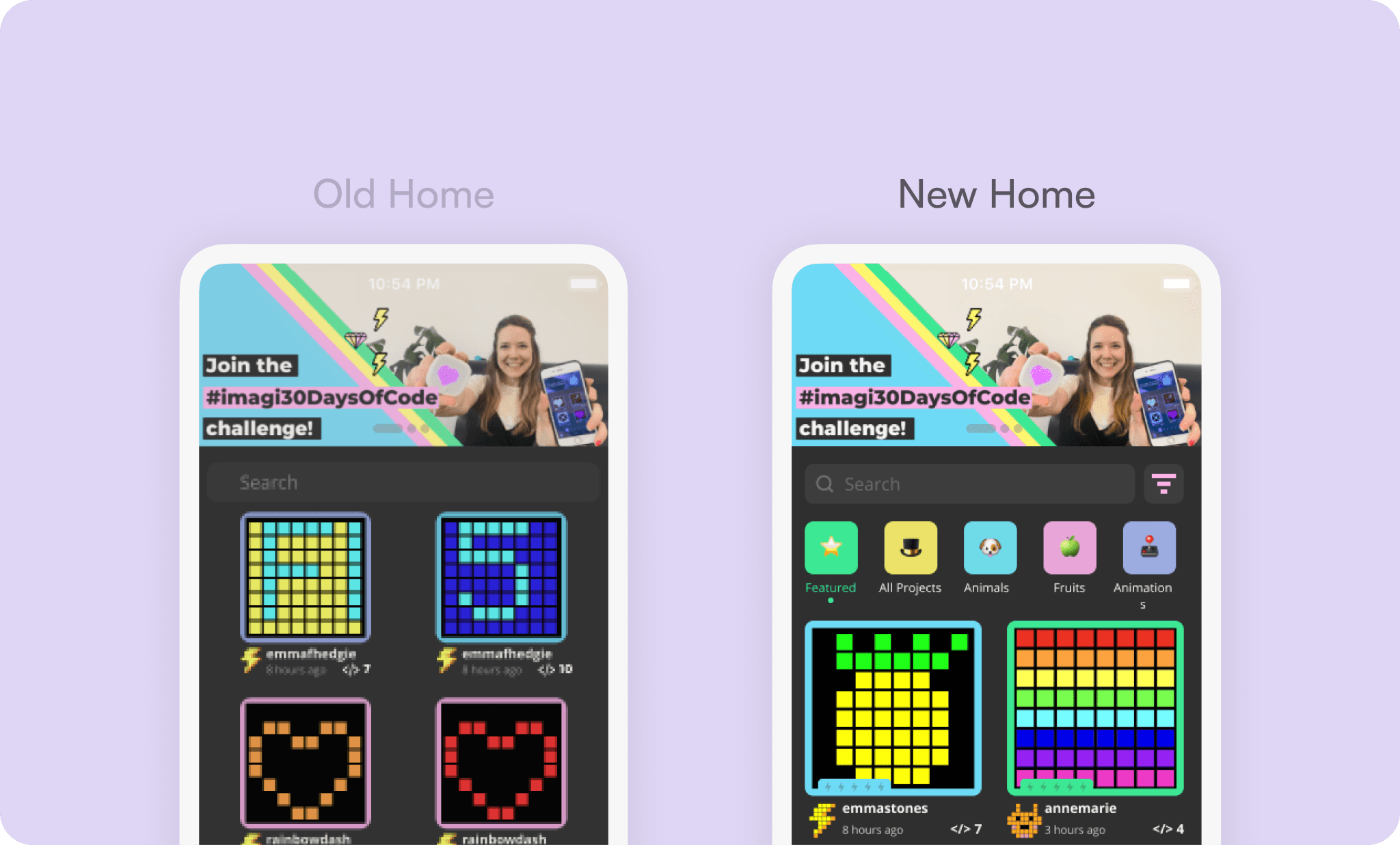 One of the first things I worked on was the Application Homepage. We started with the users' pain points gathered in user interviews about the overall homepage experience. We focused on improving the search functionality, browsing projects and finding a way so that users don't get overwhelmed when they view a project/code.