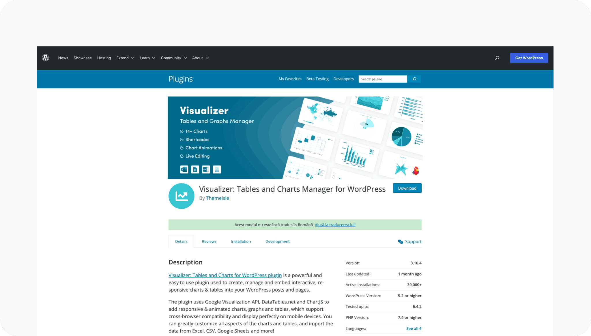 Visualizer: Tables and Charts for WordPress plugin is a powerful and easy to use plugin used to create, manage and embed interactive, responsive charts & tables into your WordPress posts and pages.